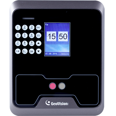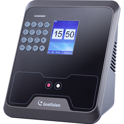 access control solution. When combined with a GeoVision controller and software, GV‐FR2020 can operate in Face Recognition mode as well as Card, Card + Face Recognition, or Password + Face Recognition.